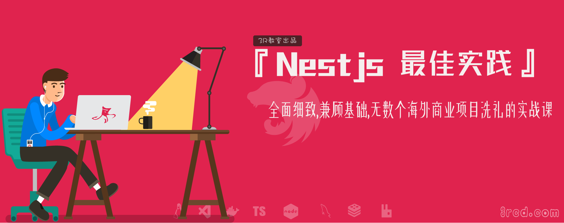 但值得注意的是:本篇是以Nestjs框架为主,定位于高级node.js后端开发。课程的目标在于增加求职优势,所以绝大部分内容是围绕node.js与ts的核心知识和高级开发技能所开展的。而经过几年的发展,3R教室会员的学习目标变得越来越多样化。有因为纯兴趣爱好想学习的,也有想成为远程个人创业者(独立作品开发/外包项目接单/知识付费等)或创意工作者的同学。许许多多的新3R会员并不都完全以求职为目的。再加上本课程的内容与外部那种点到为止或免费或收费的nestjs课程不大相同,属于源码级别的学习。所以学习曲线非常陡峭和抽象,只适合经验丰富的前端转全栈或者java等老后端转技术栈。为此,除非你的目标纯粹就只是想增加求职优势(部分Node.js岗位要求会nestjs),基础也比较好,那么,推荐学习本篇。否则我们更加建议直接放弃本篇,而学习全栈课。或者等后续TS开发能力比较成熟后,根据再学习本课亦可!